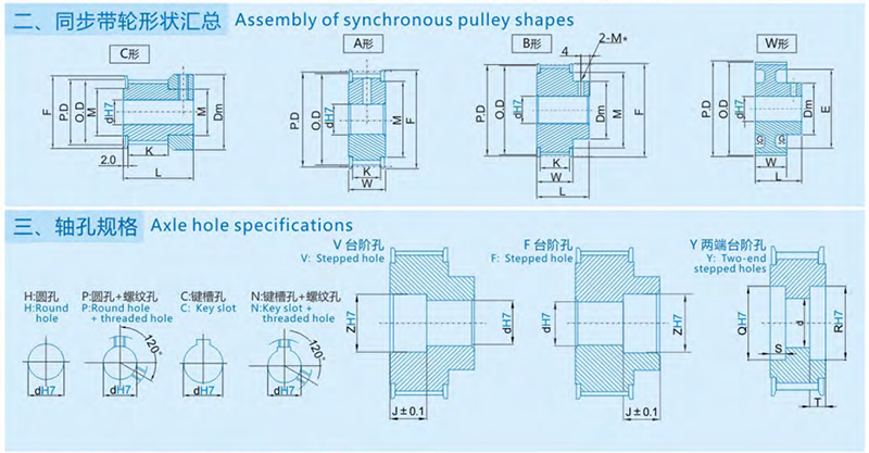 A B C W Shape 2M to 20M Steel Aluminum Synchronous Pulleys