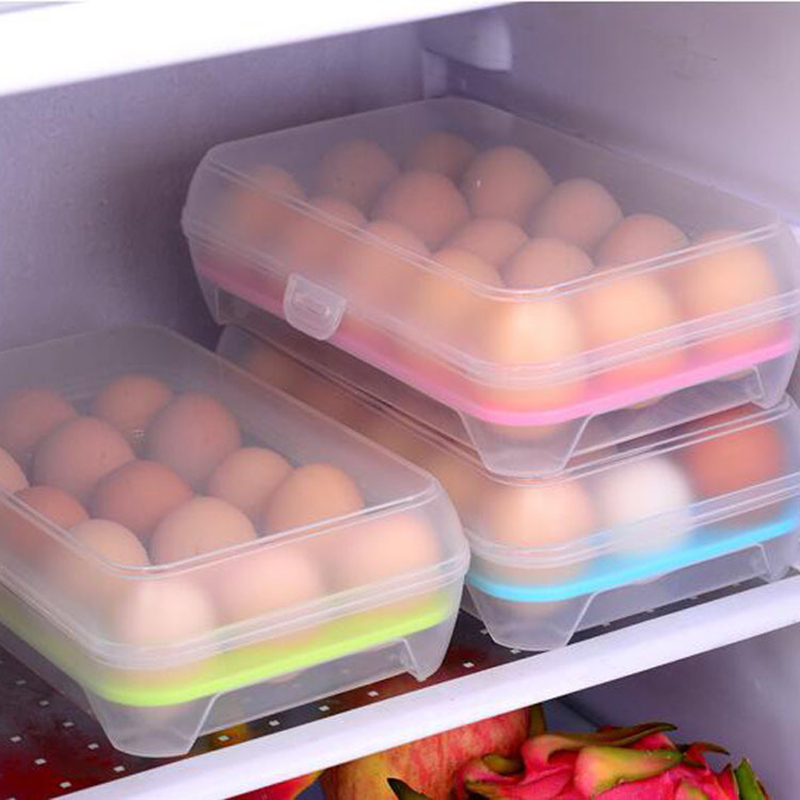 Clear Plastic Egg Holder 15 Egg Tray Holder BPA Free Fridge Organizer with Lid, Refrigerator Storage Container